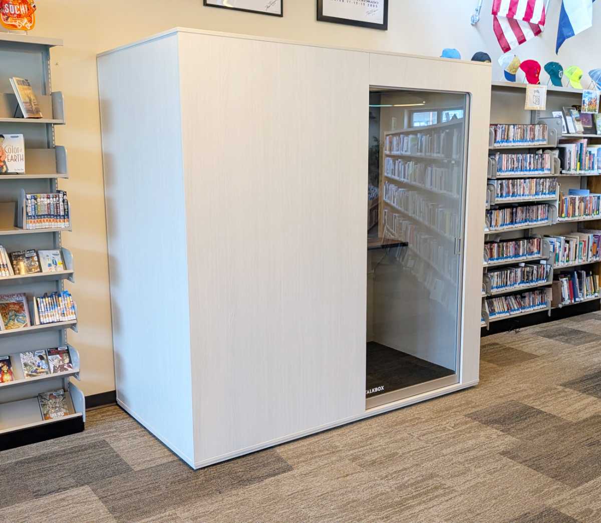 To address this growing need, the library is exploring the addition of a TalkBox Booth—a modern, soundproof privacy pod designed specifically for public spaces.
